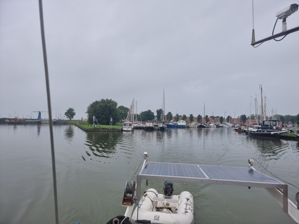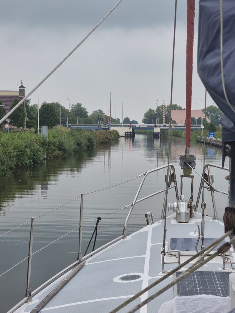 Vanochtend is het om 6 uur al aardig druk in de haven. Wat blijkt, de brug over de Noorderhaven is defect. Een aantal boten ligt al voor de brug te dobberen en gaan maar weer tegen de wal. Wij willen ‘pas’ om 8 uur weg dus we hebben nog wat spelling. We gaan klaar liggen voor het moment dat de brug het weer doet. Stel je voor dat ze hem maar 1 keer kunnen openen dan willen we er wel uit zijn. Precies om 8 uur gaat de brug open. Voor ons perfecte timing.