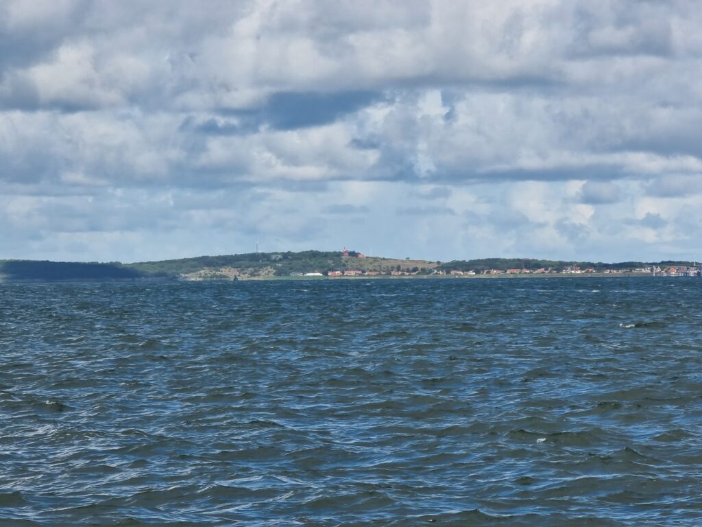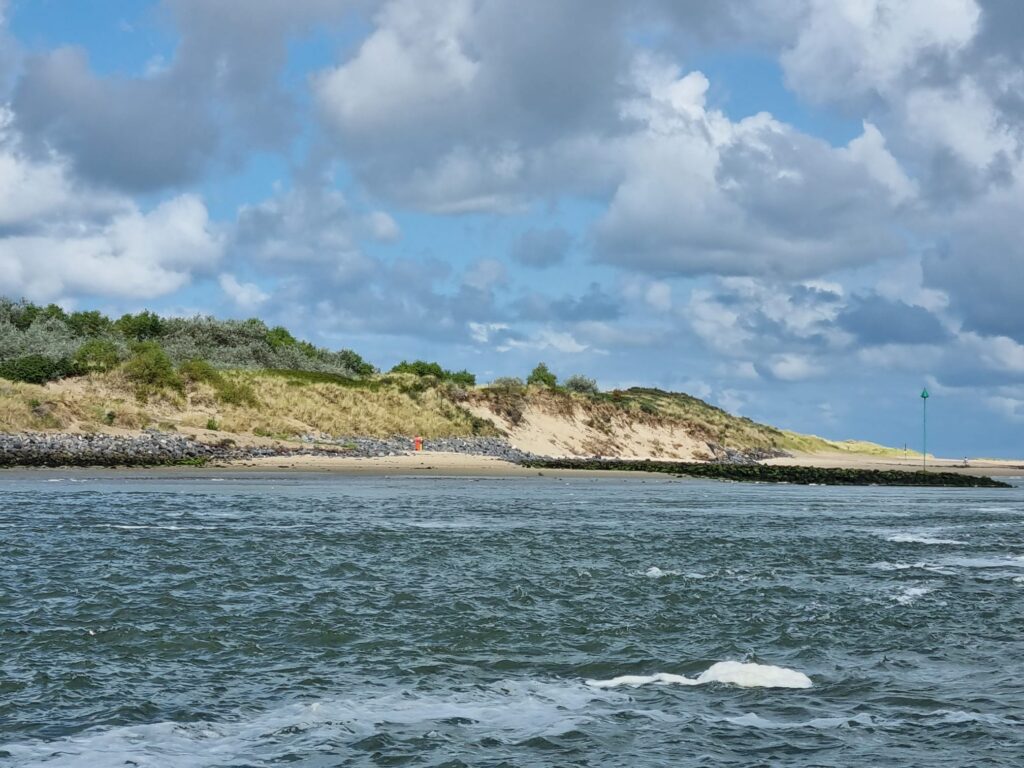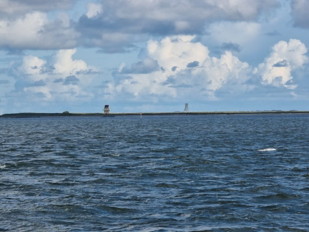 Zoals verwacht hebben we de wind pal tegen, wel hebben we de stroom mee. Dat wordt een mooie test voor de motor. De ebstroom voert ons langs het vogeleiland Grient.