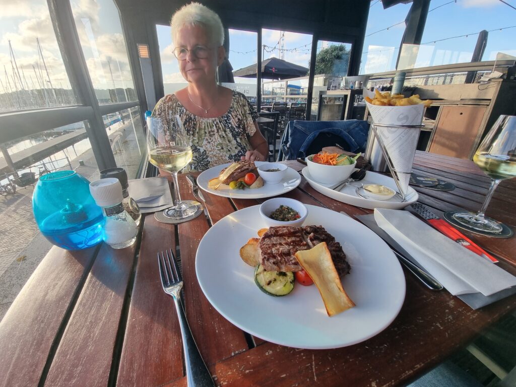 Gisterenavond zijn we wezen eten in de Dining, het haven restaurant. Het uitzicht was zoals altijd prachtig.