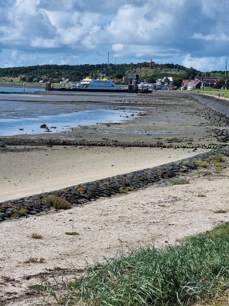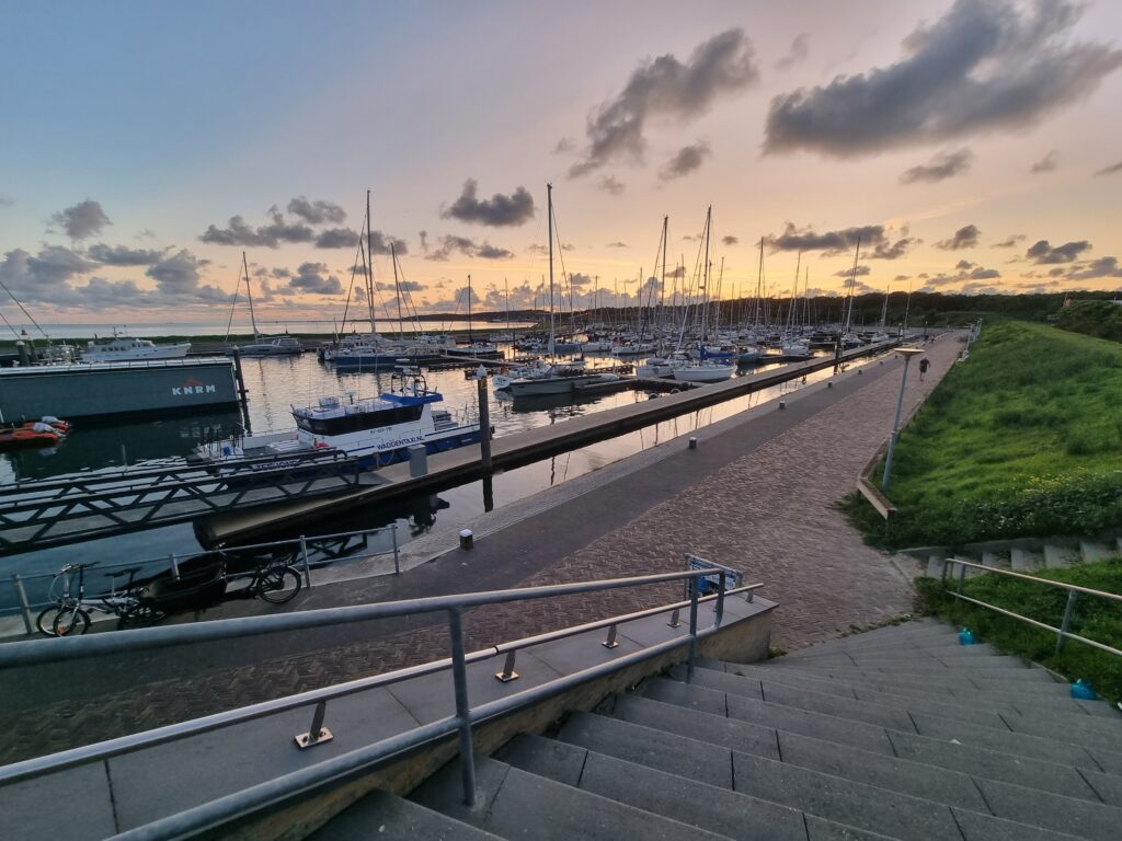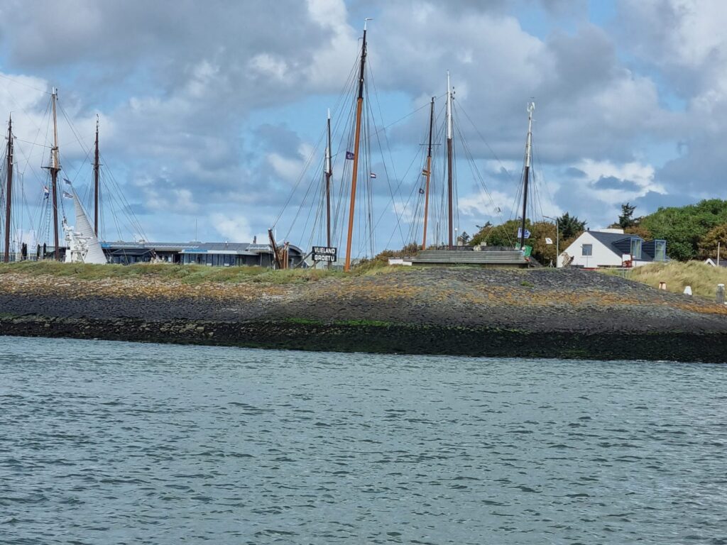 Het is niet druk in de haven van Vlieland. We krijgen een plekje aan de kak-boten steiger.