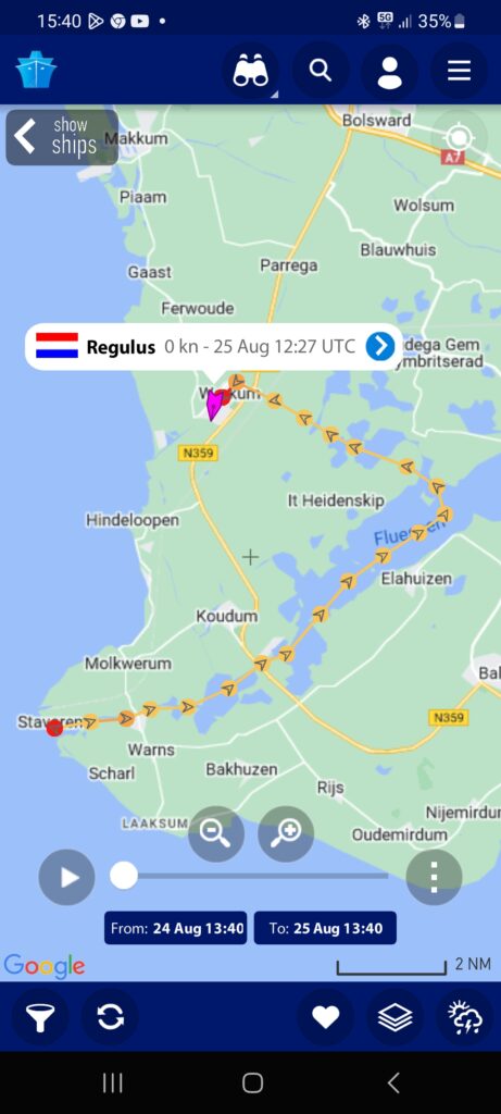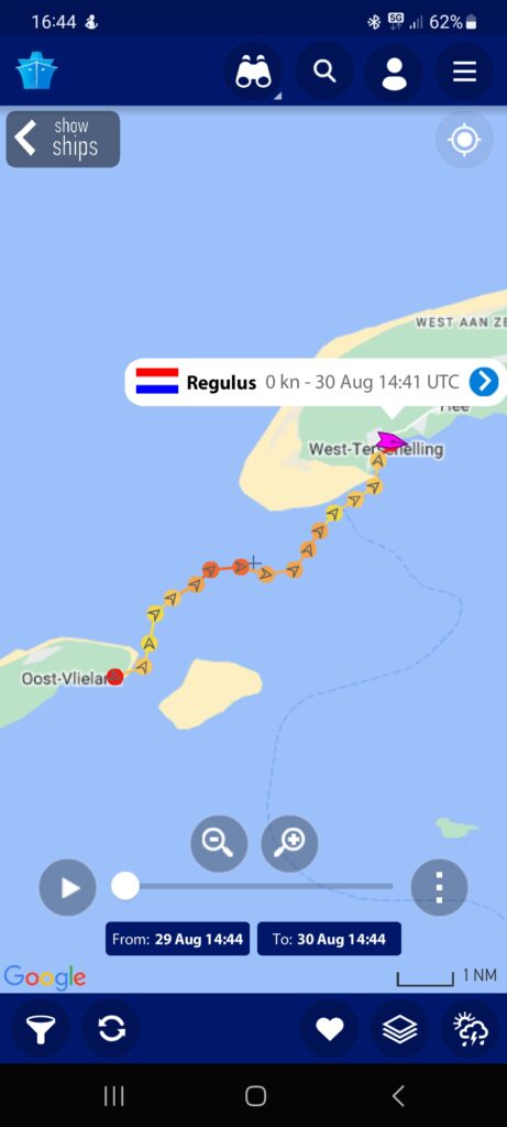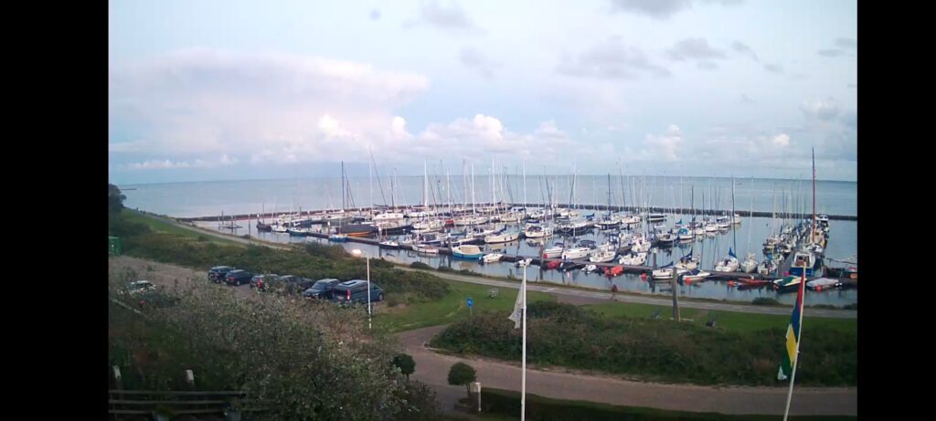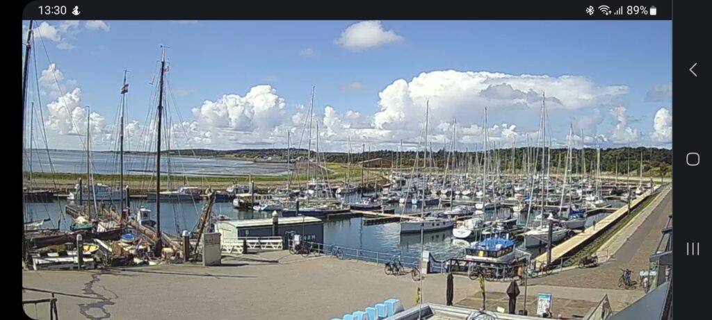In de haven is er nog een plekje aan de steiger en leggen we aan. Hieronder zoek de Regulus op de webcam.