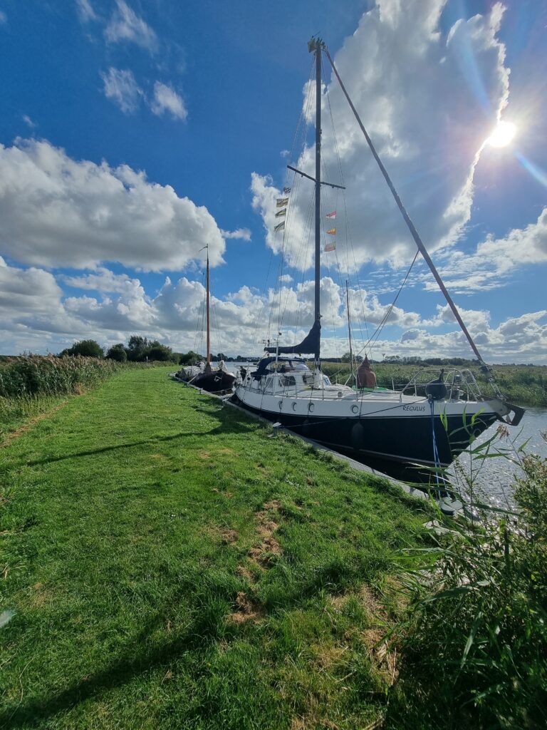 We varen verder naar Ritsumazijl. Bijna alle plekjes zijn al bezet maar wij vinden een laatste plekje in het Deinumer Rak. Nu kan erbijna niemand meer langs.