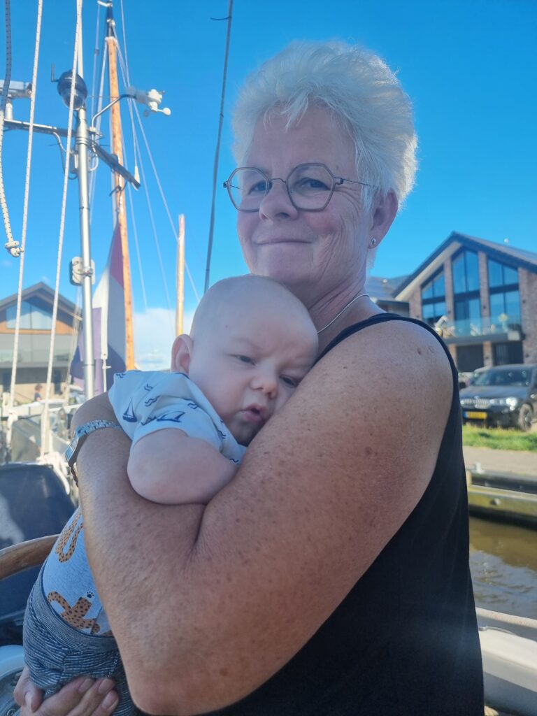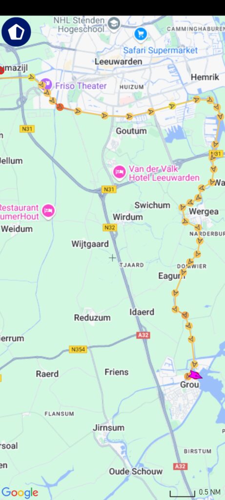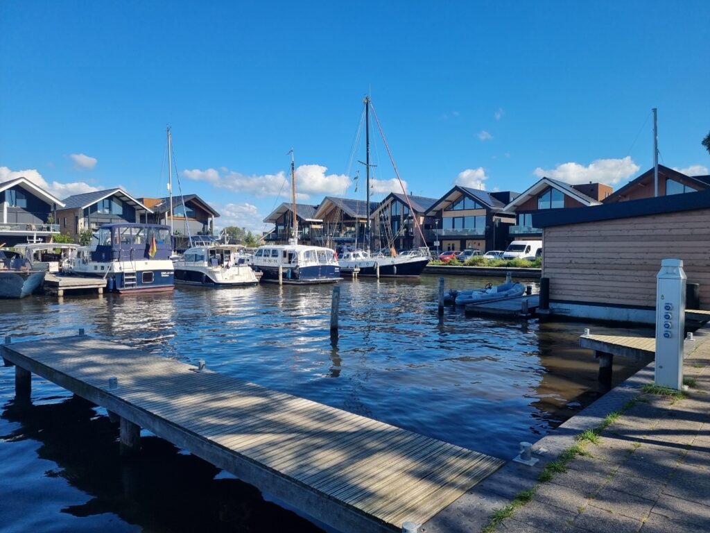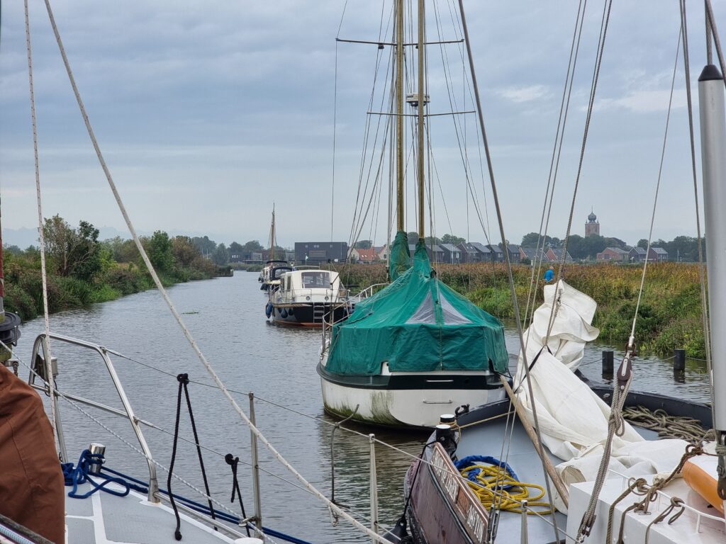 We liggen nu in het door ons vaak bezochte gemeentehaventje van Grou. Met die nieuwe huizen er omheen is het niet meer wat het geweest is.