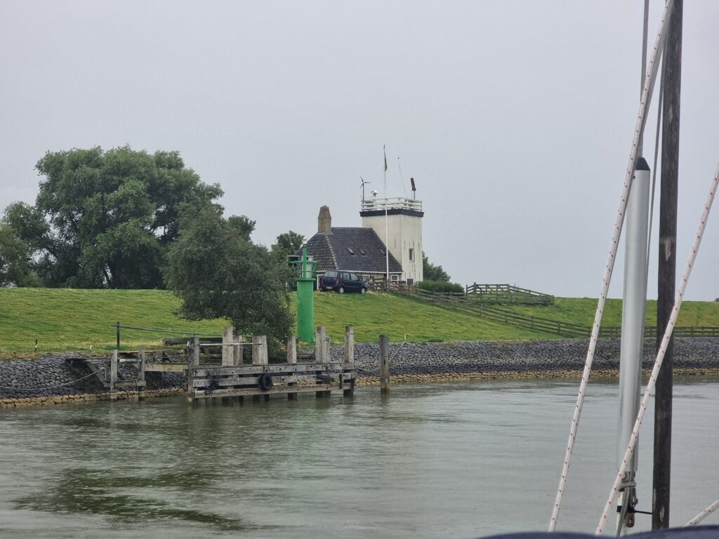 Daarna naderen we Stavoren. Wanneer je van hieruit tussen rood en groen doorvaart kom je mooi op de dijk.