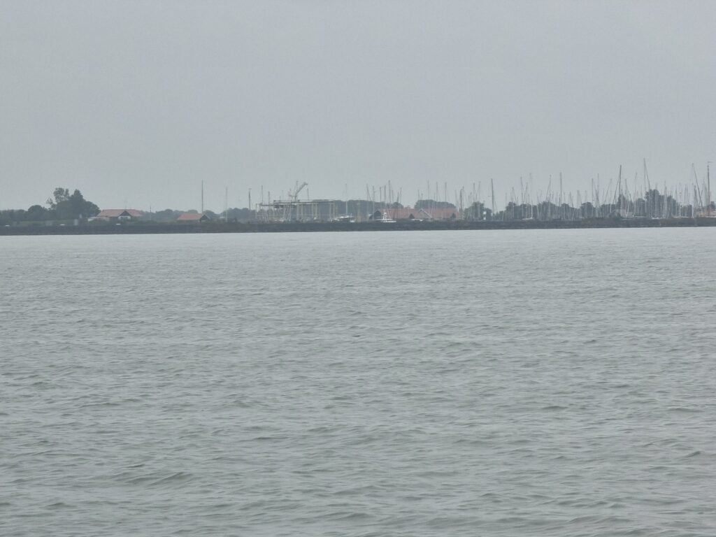 De regenbuien zijn niet te ontwijken. Er is ook geen wind. We besluiten om motorbootje te gaan spelen, we gaan zelfs binnen sturen. We hebben eerder nog geen tijd gehad om de automatische pilot te testen. Dus dat doen we ook maar.