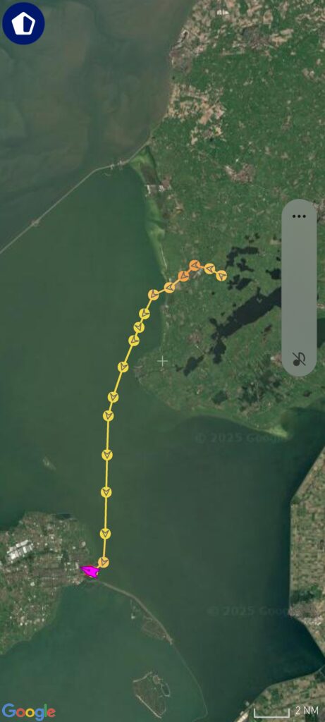 In het begin is het even zoeken naar de instellingen van de autopilot maar dan varen we kaarsrecht.