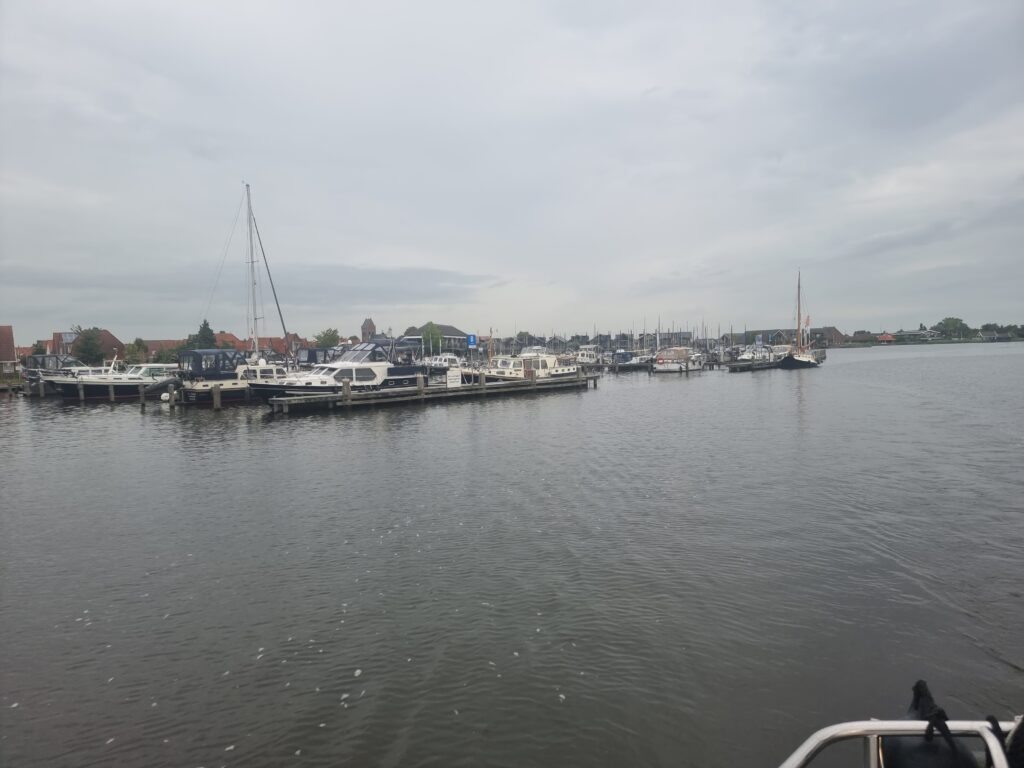 Om iets na achten laten we de haven van Grou achter ons. Het weer beloofd veel regen.