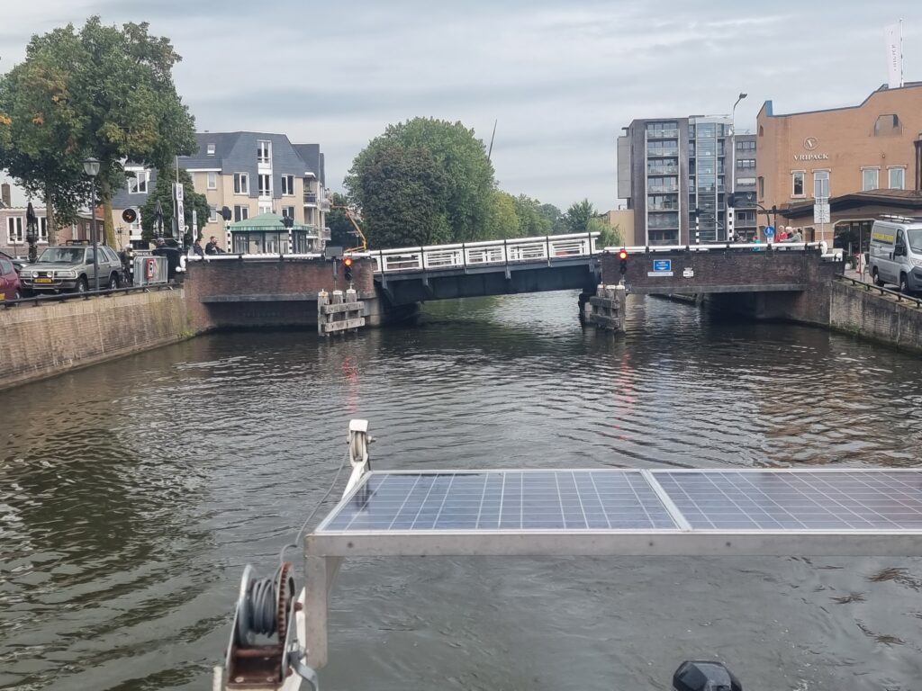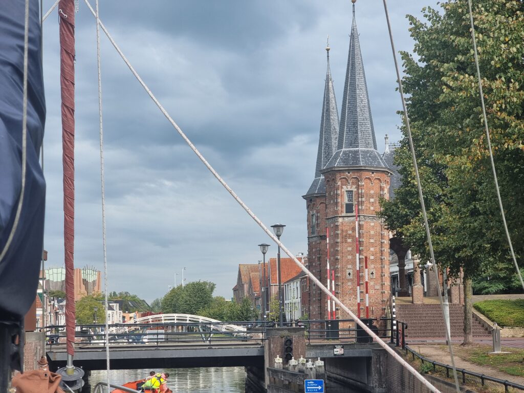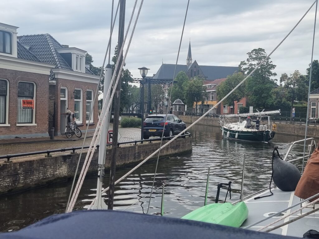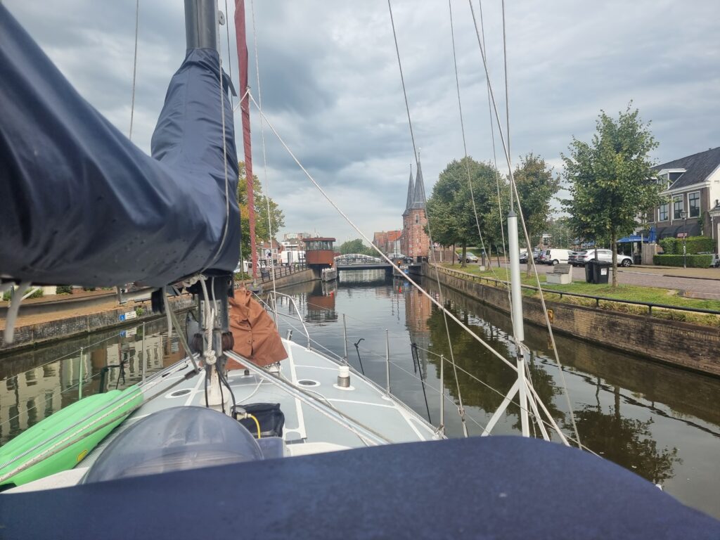 We moeten door Sneek omdat de brug bij Uitwelleringa nog steeds defect is. Ook Sneek is erg rustig. De eerste brug gaat direct voor ons open.
