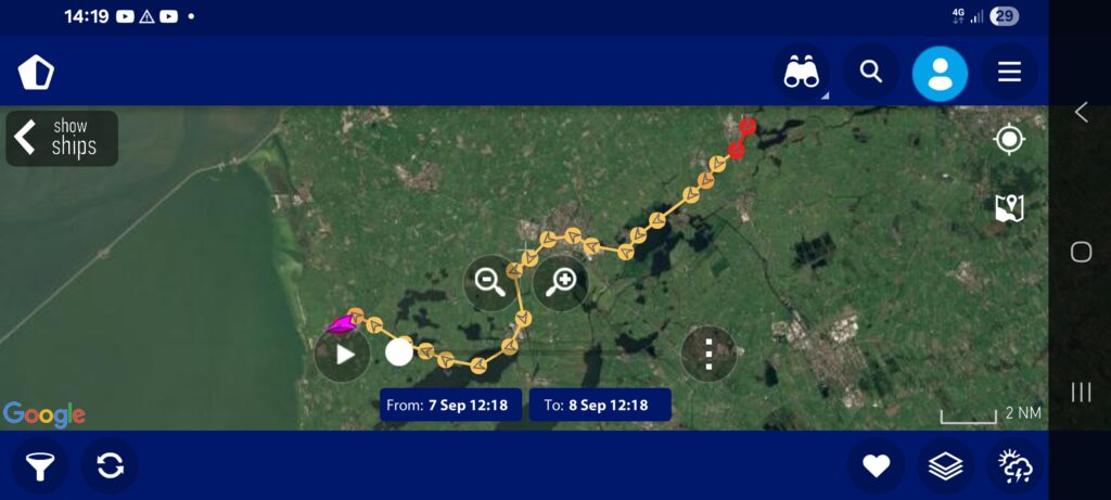 We varen door naar Workum, waar het weer lekker zonnig is.